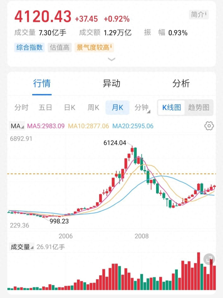 现在的行情,就像是在攀登一座未知高度的山峰。我们不知道终点是5000点还是更高千层金,但既然3万亿的成交量已经让我们站上了4100点,那我们就静观其变。如果未来半年,成交量真能疯狂到5万亿,那拿下5000点也不是不可能。